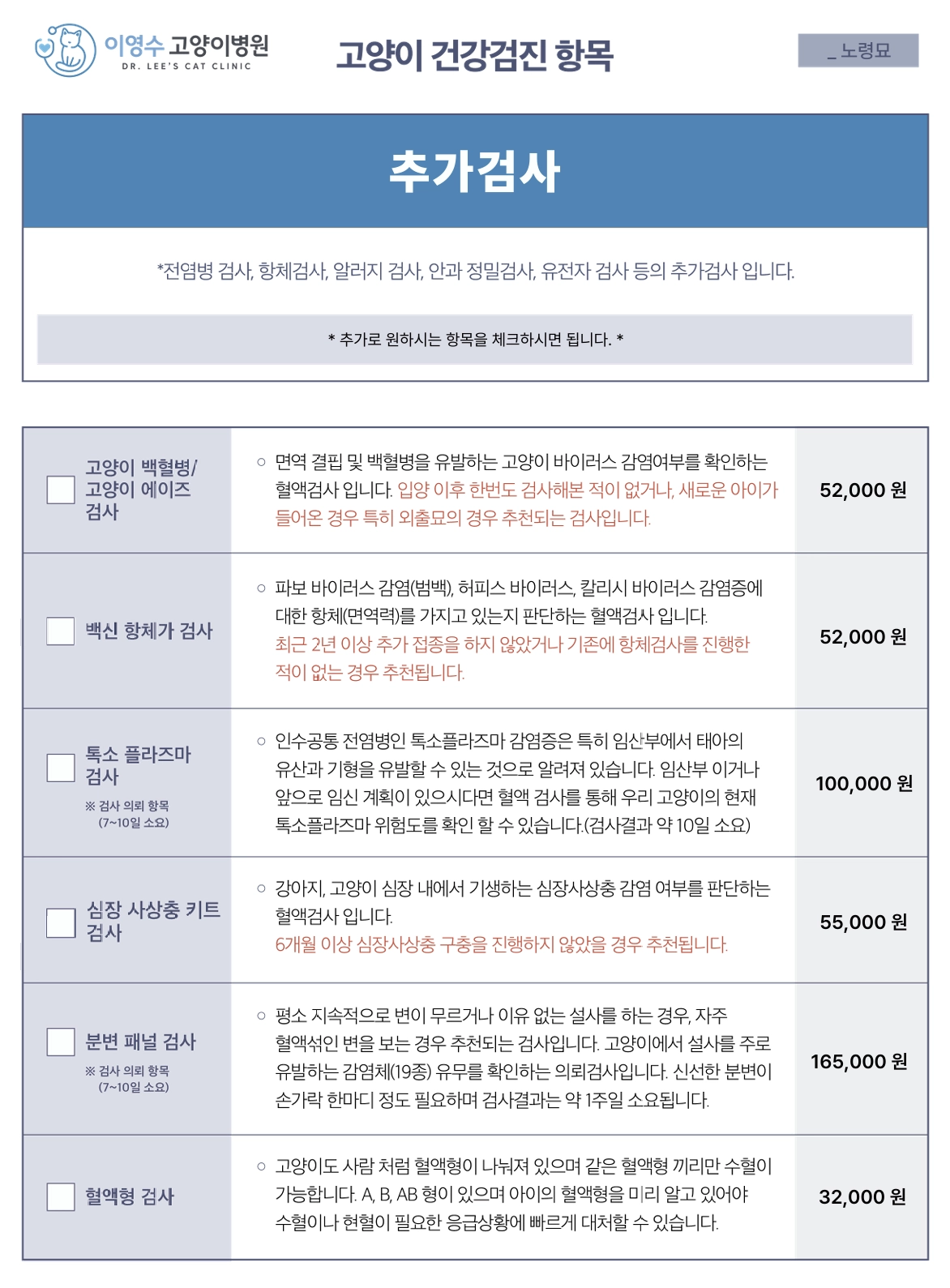 노령묘(10살 이상) 건강검진